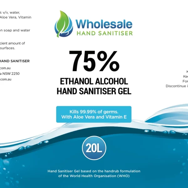 Hand Sanitiser Gel, 75% Alcohol, 20 Litre Bottle Made in Australia